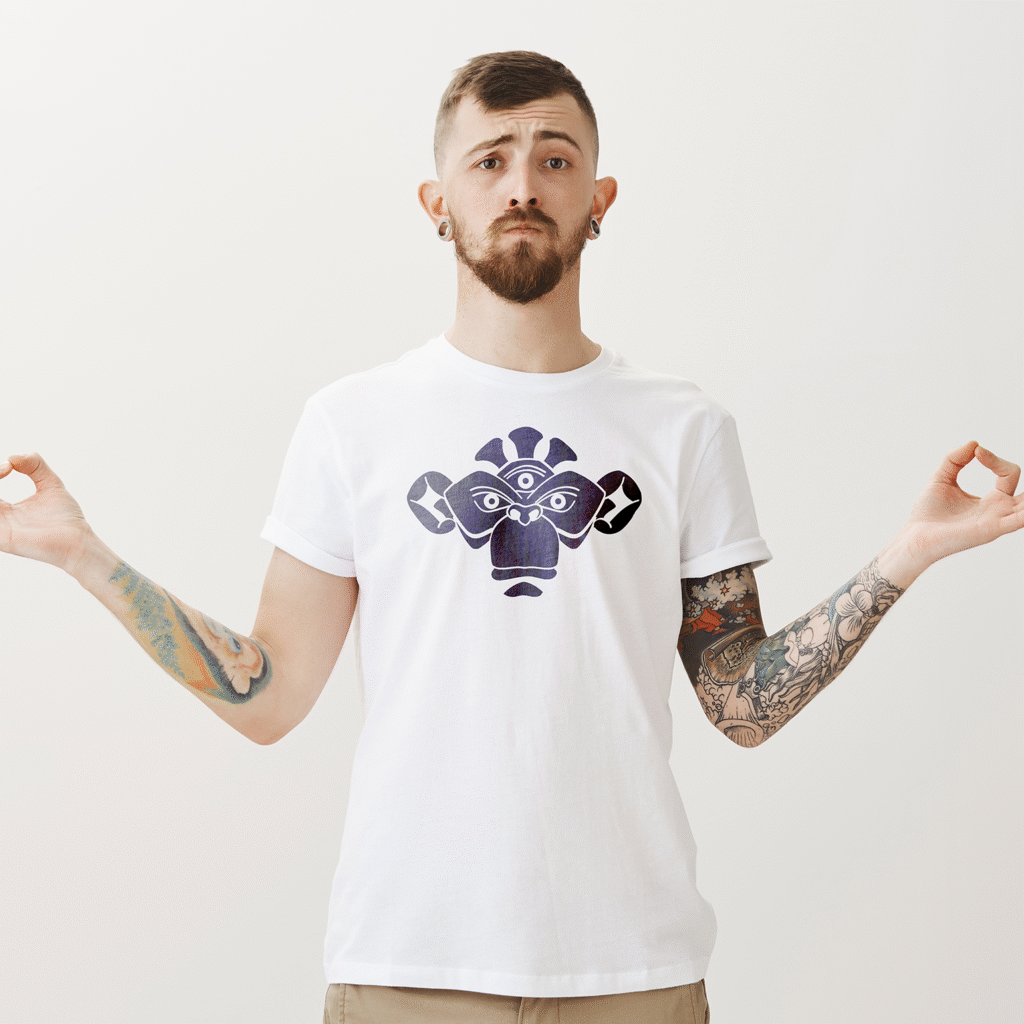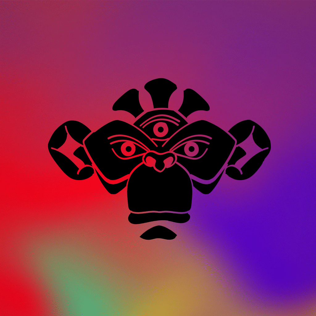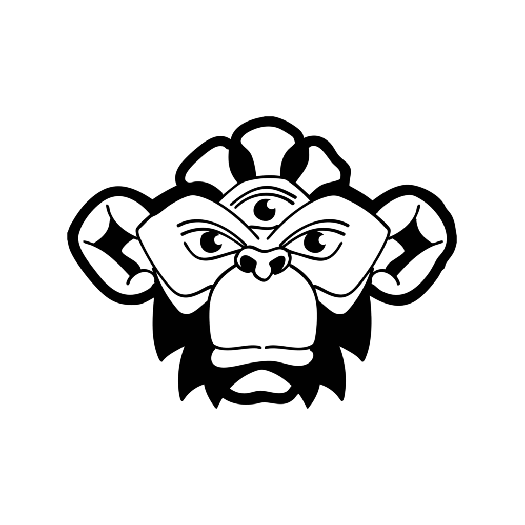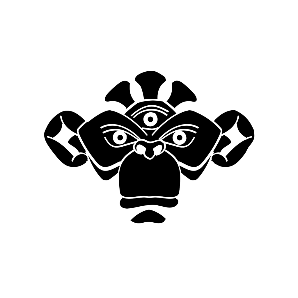 Phase 4 – Illustrator – vector symbol v2. Reduced even more the details, the ape face at reduces size appears as a shamanic totem.