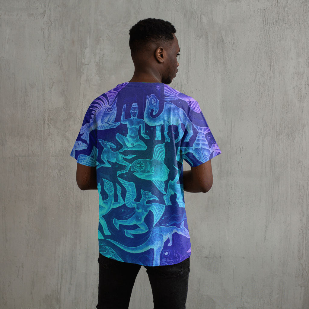 This system palette allows the brand to express itself in multiple forms: animated gradients serve as moving backgrounds and digital visuals, while still frames from the same sequences provide static applications for print, posters, and social content. The result is a consistent yet ever-changing visual language — a living color system that mirrors the themes of transformation, consciousness, and collective rhythm at the heart of the Jungle Party.